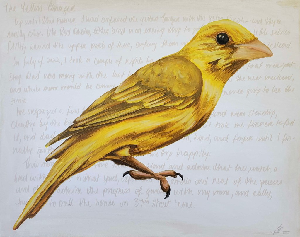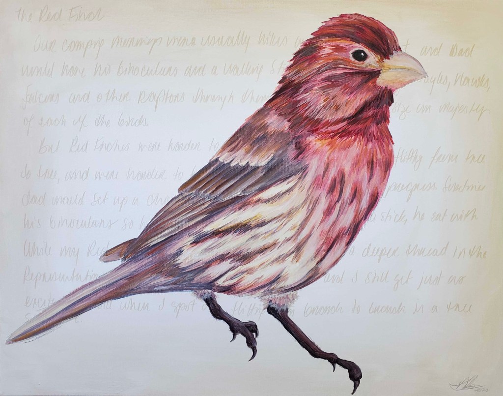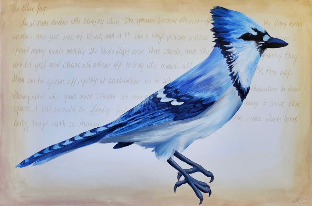This series is a processing and exploration of my parents moving and leaving their home after 31 years, as well as the past sale of my Grandparent’s property. Each memory is relayed through a bird that I associate with a specific time in my life, as it correlates to growing up between the two homes.