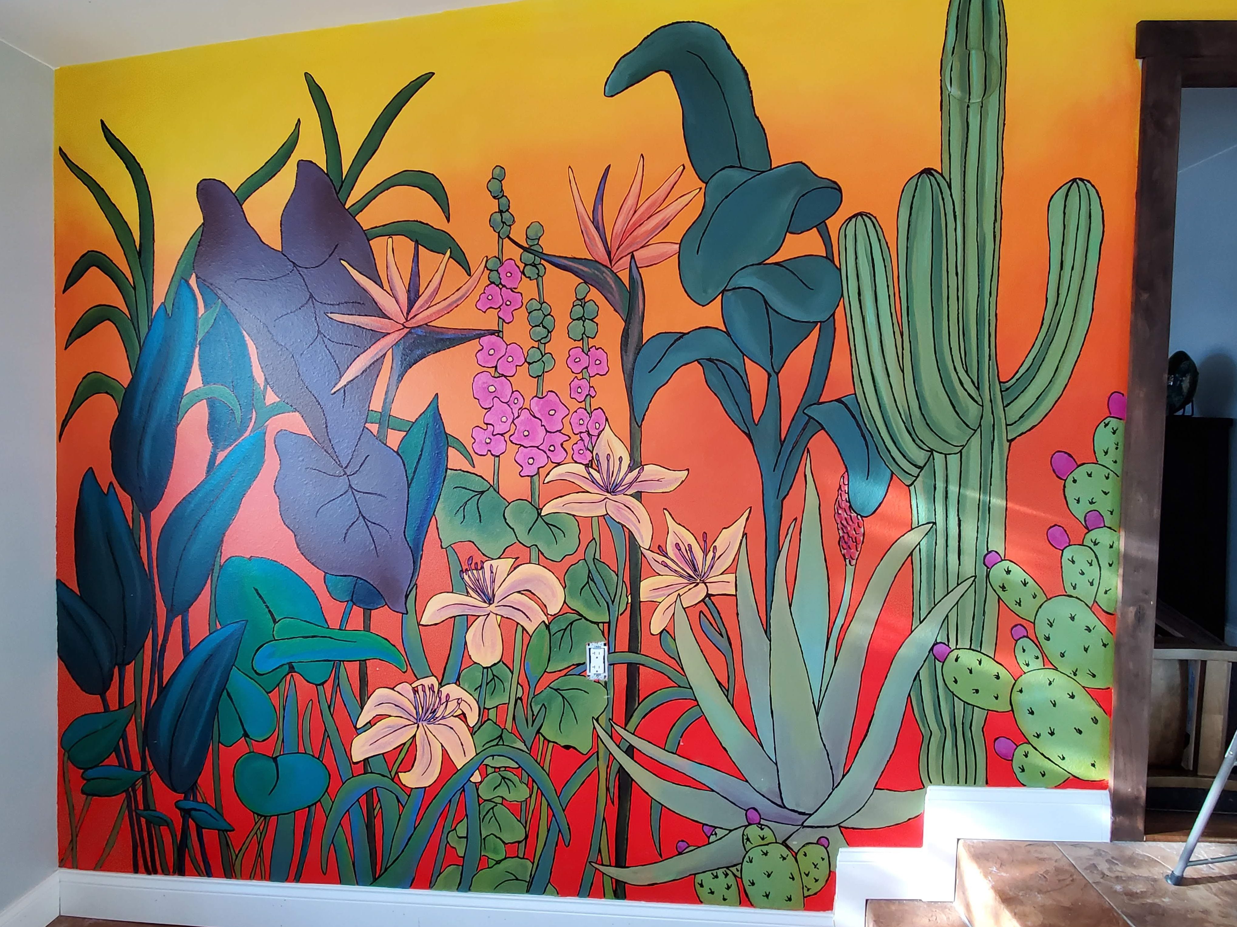 Commissioned mural based on plants from various climates and regions in the United States and Mexico. Located at a residence in Cheyenne, WY. Completed January, 2022.
